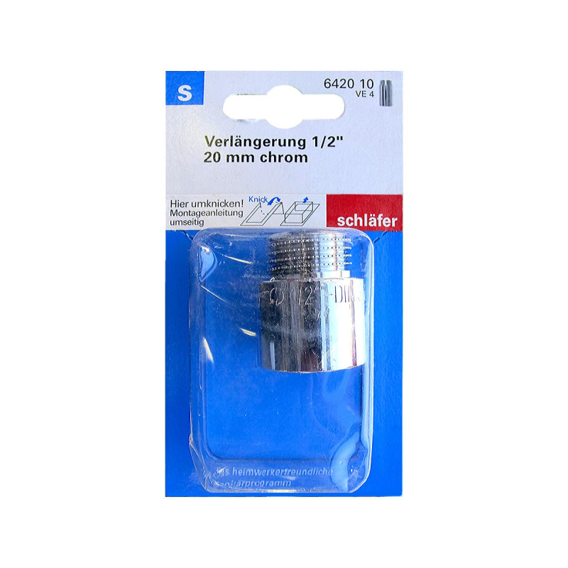 Арт. 612910 Переходник SCHLAFER ВН 1/2 - НАР 3/8 20мм хром