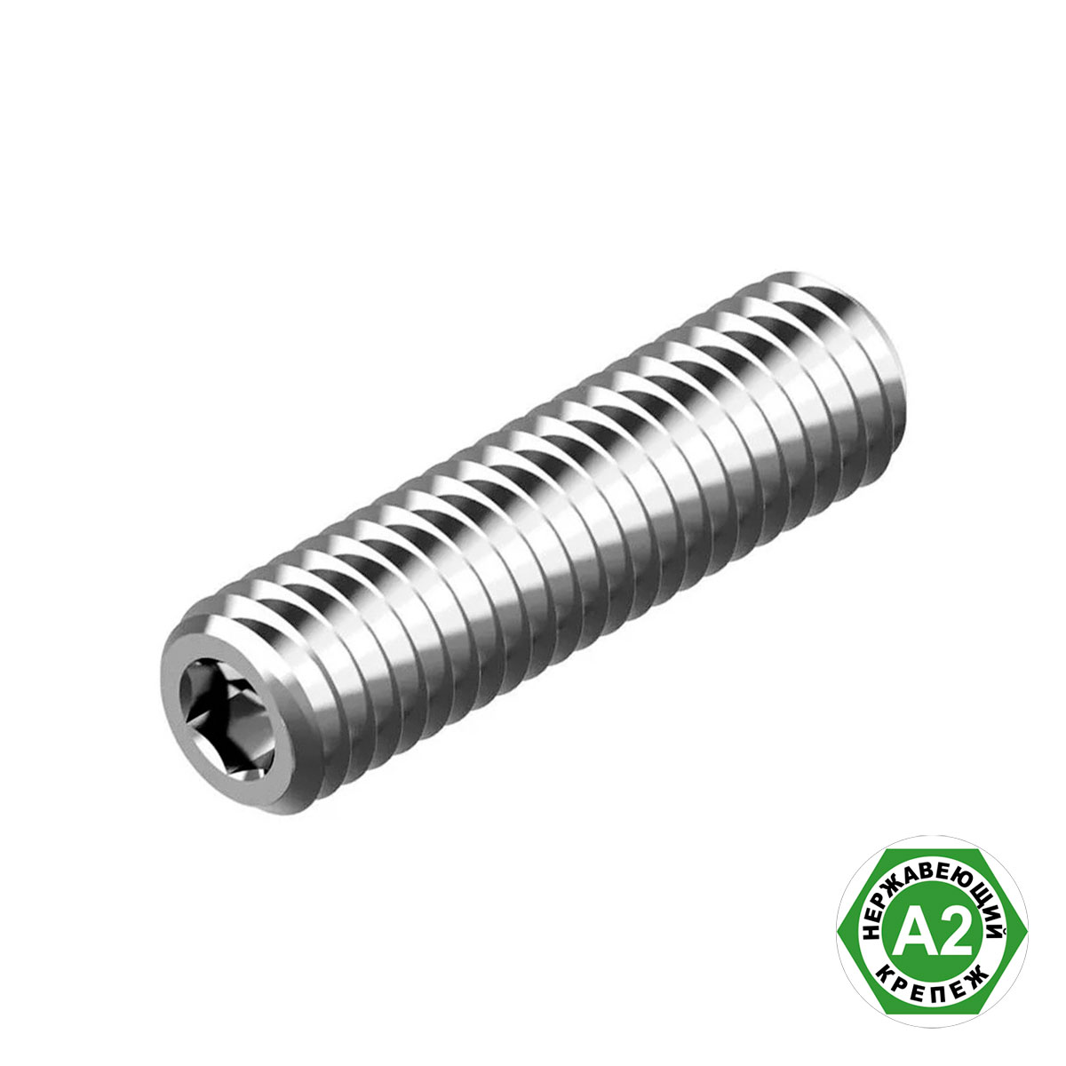 Винт установочный с внутренним шестигранником, метрической резьбой и плоским концом из нержавеющий стали А2 DIN914 (ГОСТ 11074-93) применяется для стопорения различных деталей между собой. Установочные винты применяются при необходимости зафиксировать взаимное расположение деталей относительно друг друга. Требуется предварительное засверливание.