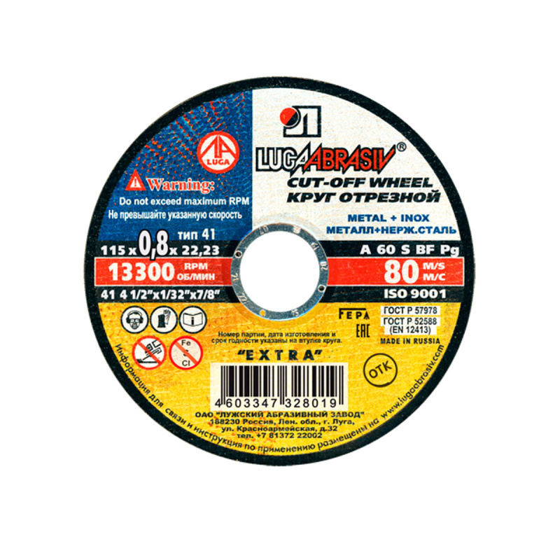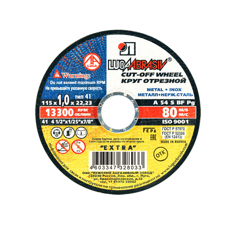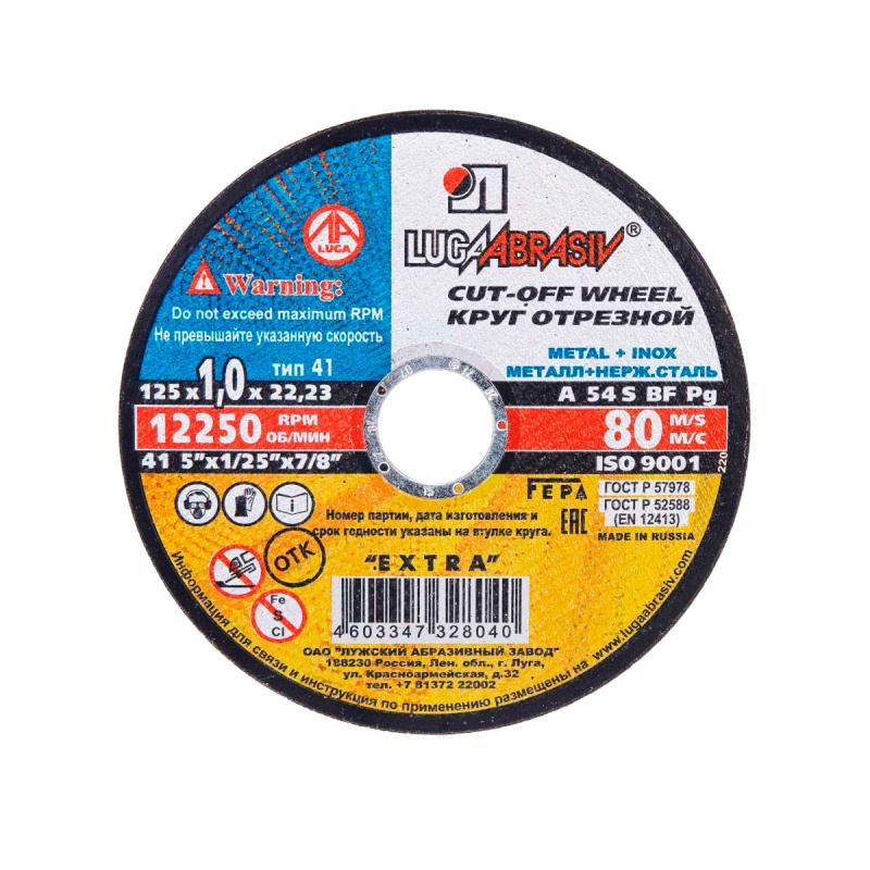 Арт. 001115026 Круги отрезные по камню бетону Луга 54С БУ80