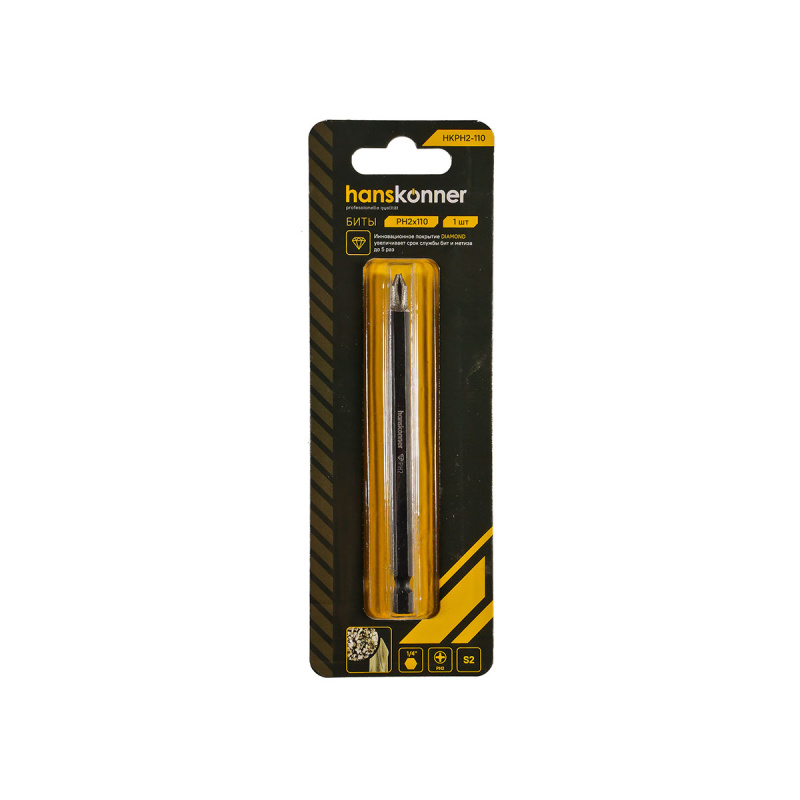 Арт. HKPH2110 Бита PH2x110мм сталь S2 Diamond, 1шт, Hanskonner