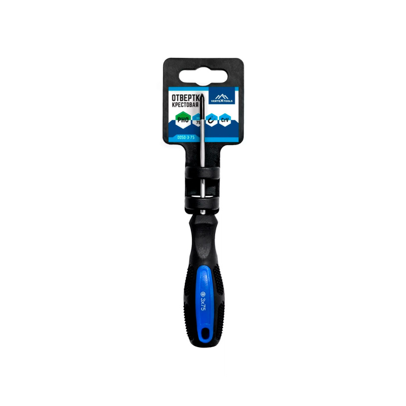 Арт. 0050375 Отвертка крестовая 3Х75 (PH0) VERTEXTOOLS
