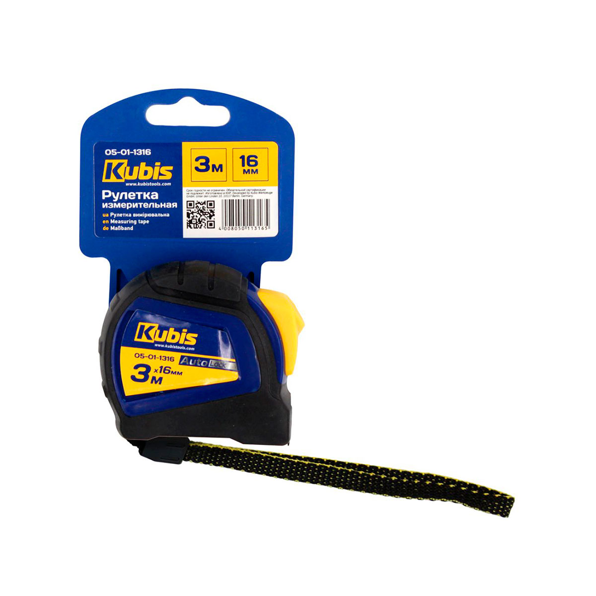 Арт. 05011316 Рулетка измерительная 3м 16мм AutoLock KUBIS