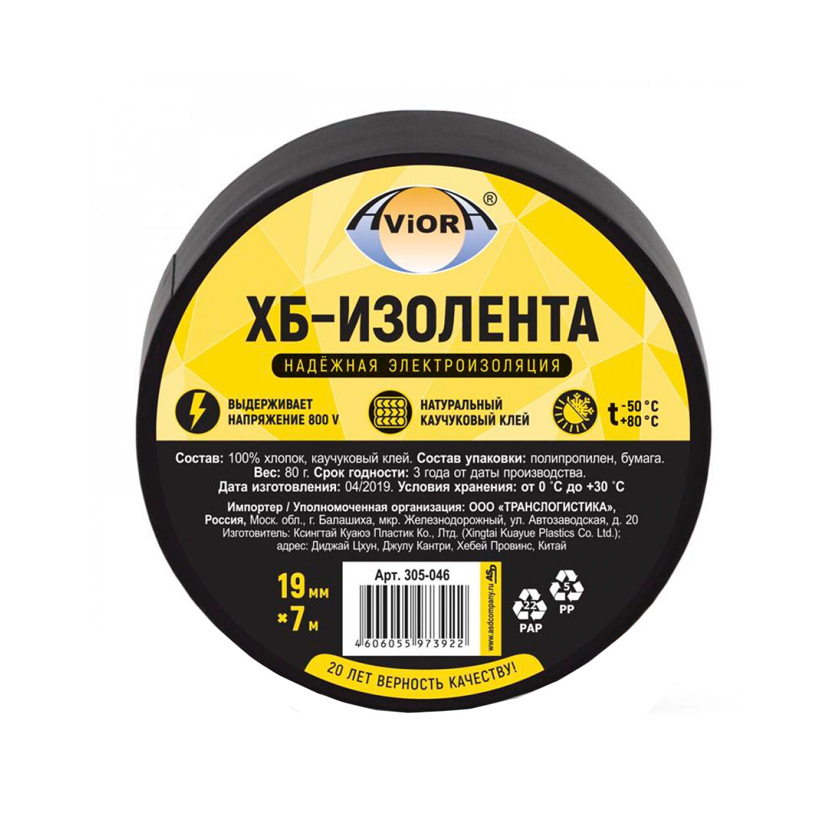 Изолента 19ммх7м 80г AVIORA