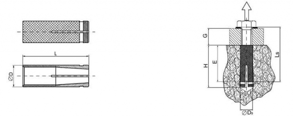 Анкер предназначен для крепления материалов и оборудования к бетону, естественному камню, кирпичу. Внутренняя резьбовая часть гильзы латунного анкера имеет коническую форму. Наружная поверхность анкера имеет накат. Простой и быстрый монтаж — анкер устанавливается в предварительно просверленное отверстие, соответствующее диаметру и длине анкера; рас­клинивается крепежным элементом при монтаже. Обладает высокой коррозионной стойкостью.