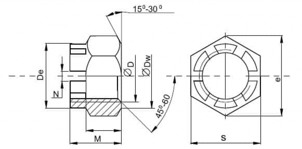 ГАЙКА ШЕСТИГРАННАЯ КОРОНЧАТАЯ ( DIN 935, ГОСТ-5918, 5932-73)