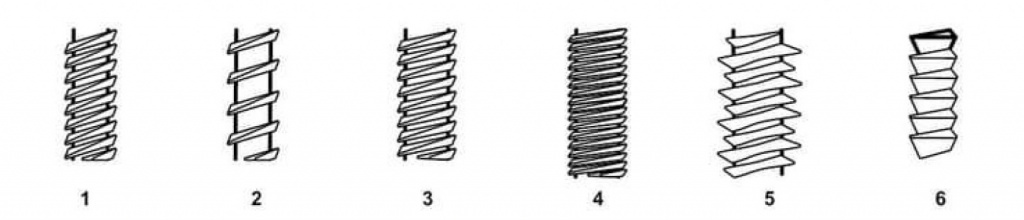 5. Двухзаходная (переменная) резьба состоит из чередующихся высоких и низких витков. Фактически это две резьбы с одинаковым шагом, одна из которых нанесена посередине между витками другой. Разница в высоте между высокой и низкой резьбой обычно составляет от 40 до 50% от высоты высокой резьбы.