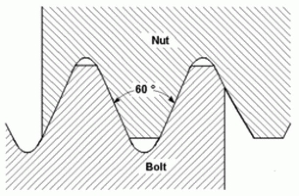 — угол вершины угол на вершине витков резьбы. Если рассматривать крепежные элементы, врезающиеся при монтаже резьбой в основание, то чем острее угол резьбы, тем меньшее сопротивление вкручиванию оказывает материал основания.
