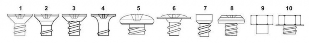 Виды головок достаточно многообразны, их выбор определяется требованиями к внешнему виду монтируемой конструкции или конкретными условиями монтажа. Основные виды головок крепежных элементов: